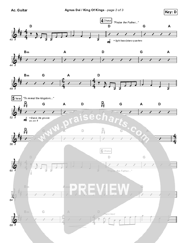 Agnus Dei / King Of Kings Acoustic Guitar Sheet Music PDF (Hillsong Worship / Chidima / Passion / Jenn Johnson / Brooke Ligertwood)
