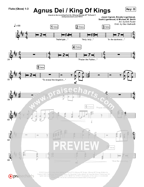Download the Orchestration wind parts for Agnus Dei / King Of Kings by Hillsong Worship / Chidima / Passion / Jenn Johnson / Brooke Ligertwood, from the album At Easter. This song was arranged by Erik Foster / Daniel Galbraith in the key of D, Eb.
