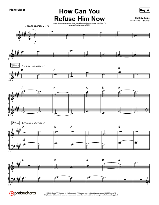 Download the piano sheet for How Can You Refuse Him Now - Pilgrimage by Hillsong Worship, from the album At Easter. This song was arranged by Daniel Galbraith in the key of A, Bb.