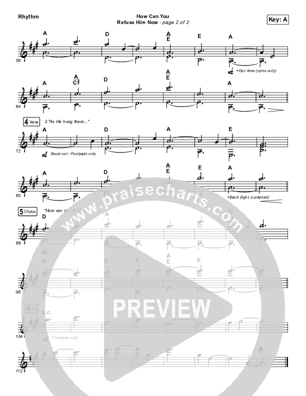 Download the Rhythm Chart for How Can You Refuse Him Now - Pilgrimage by Hillsong Worship, from the album At Easter. This song was arranged by Daniel Galbraith in the key of A, Bb.