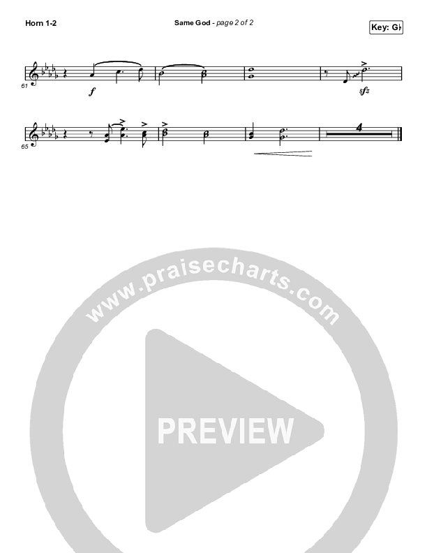 Download the Orchestration brass parts for Same God by Cross Worship / Jillian Ellis / D'Marcus Howard, from the album Same God. This song was arranged by Jeff Moore / Daniel Galbraith in the key of G, Gb.