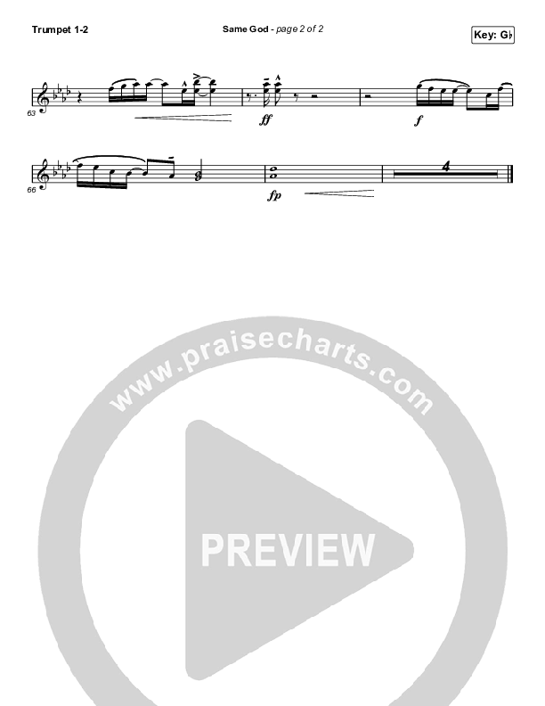 Download the trumpet sheet music for Same God by Cross Worship / Jillian Ellis / D'Marcus Howard, from the album Same God. This song was arranged by Jeff Moore / Daniel Galbraith in the key of G, Gb.