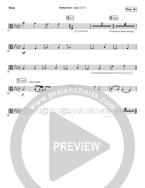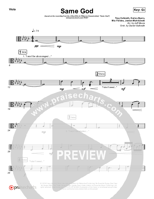 Download the Viola sheet music for Same God by Cross Worship / Jillian Ellis / D'Marcus Howard, from the album Same God. This song was arranged by Jeff Moore / Daniel Galbraith in the key of G, Gb.