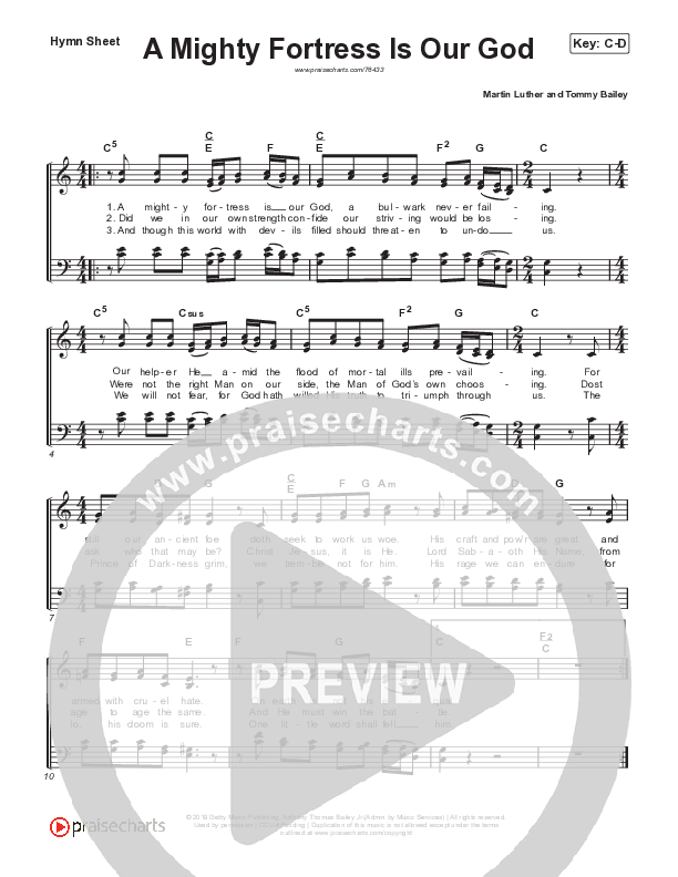 A Mighty Fortress Is Our God Hymn Sheet (Keith & Kristyn Getty / Tommy Bailey)