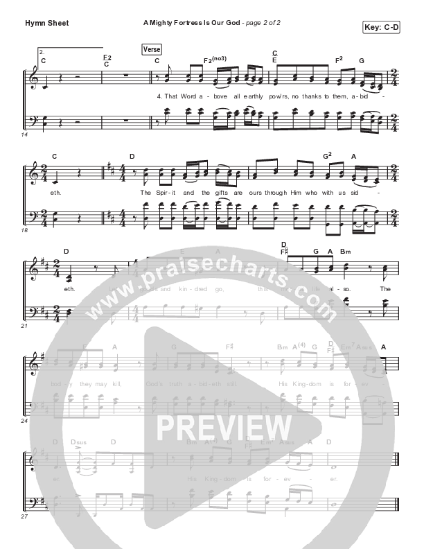 Download the Hymn Sheet for A Mighty Fortress Is Our God by Keith & Kristyn Getty / Tommy Bailey, from the album Sing! Global - Live At The Getty Music Worship Conference. This song was arranged by Jeff Moore in the key of C, Db.