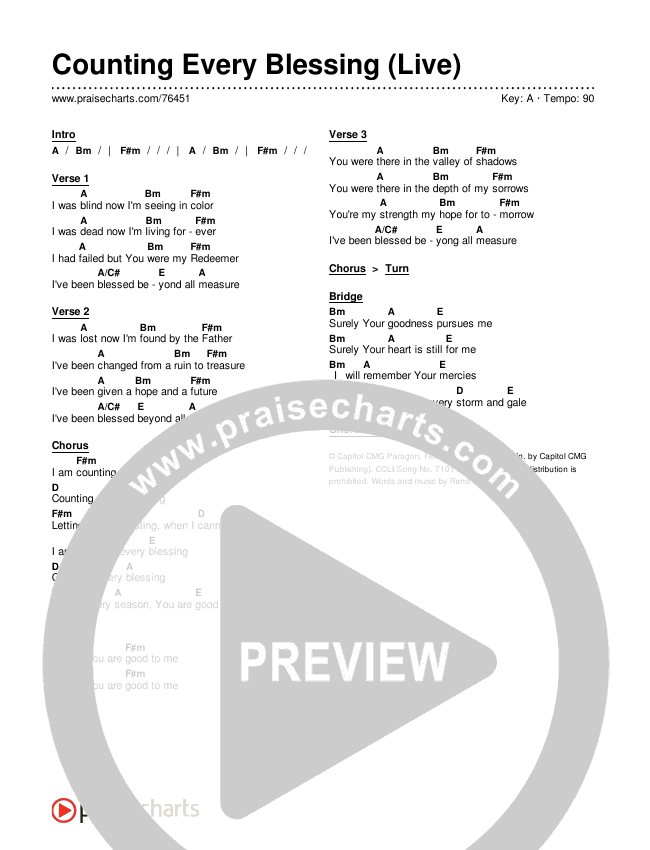 Download the PDF Chord Charts for Counting Every Blessing (Live) by Shane & Shane/The Worship Initiative, from the album The Worship Initiative Volume 24.