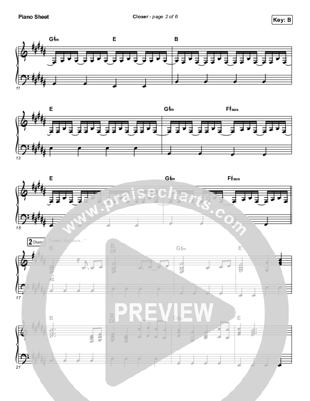 Download the piano sheet for Closer by Maverick City Music, from the album Maverick City Vol 3 Part 2. This song was arranged by Erik Foster in the key of B, C.