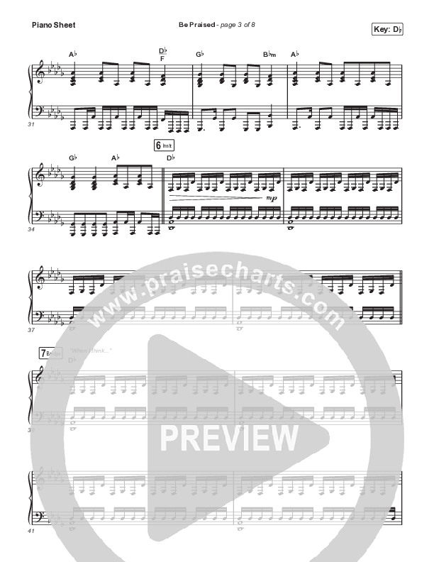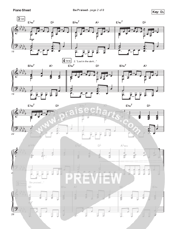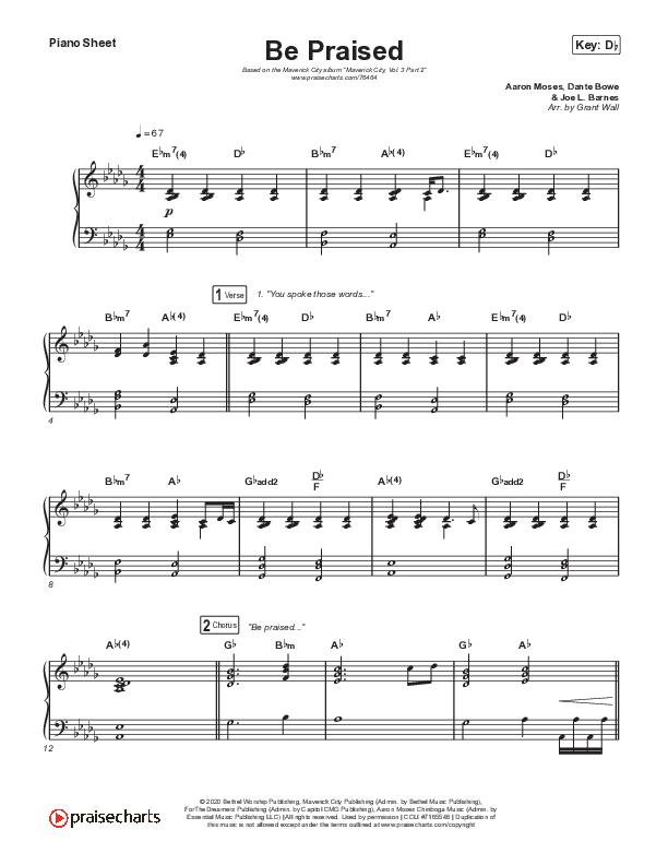 Download the piano sheet for Be Praised by Maverick City Music, from the album Maverick City Vol 3 Part 2. This song was arranged by Grant Wall in the key of C, Db.