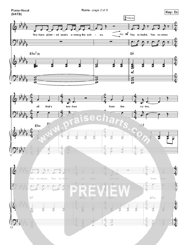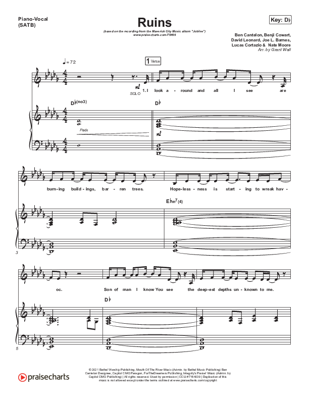 Download the sheet music for Ruins by Maverick City Music, from the album Jubilee. This song was arranged by Grant Wall in the key of C, Db.