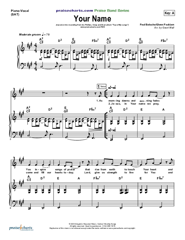 Download the sheet music for Your Name by Phillips Craig & Dean, from the album Let My Words Be Few. This song was arranged by Grant Wall in the key of A, B.
