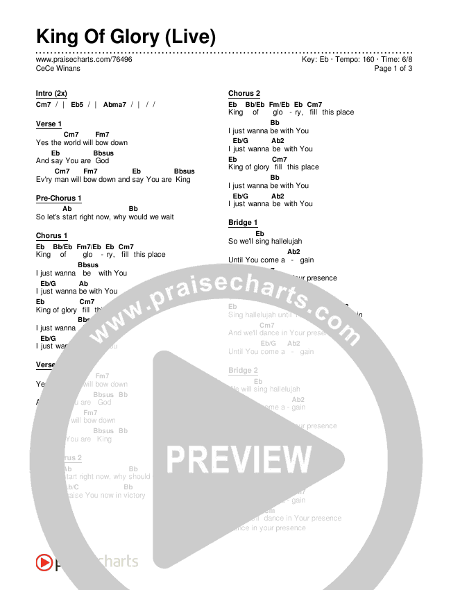 King Of Glory (Live) Chords PDF (CeCe Winans)