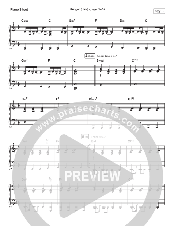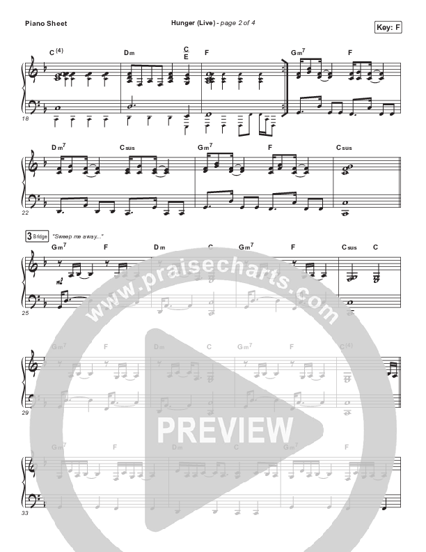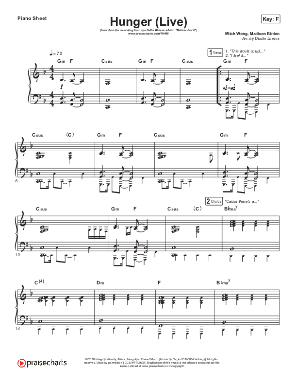Download the piano sheet for Hunger (Live) by CeCe Winans, from the album Believe For It (Deluxe). This song was arranged by Dustin Loehrs in the key of F, G.