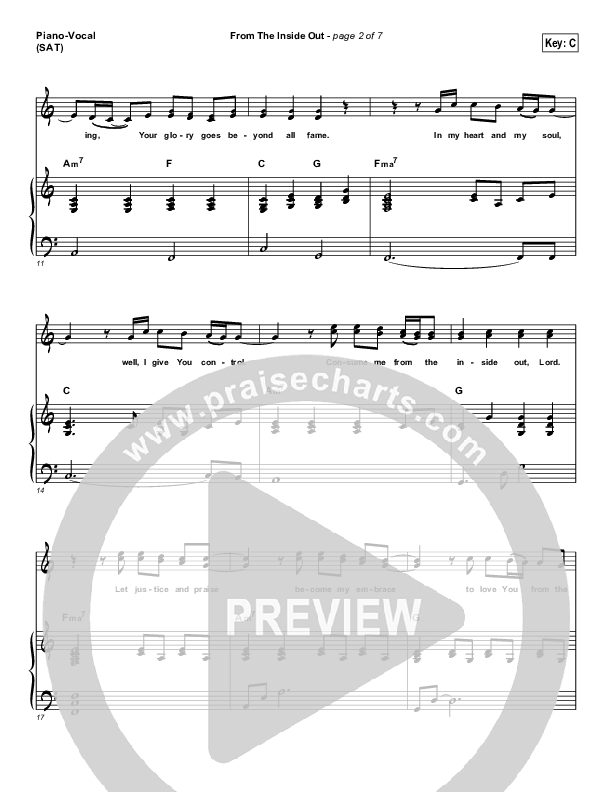 Download the sheet music for From The Inside Out by Phillips Craig & Dean, from the album Fearless. This song was arranged by Erik Foster / Victor Rodriguez in the key of Bb, C.