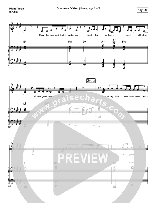 Download the sheet music for Goodness Of God (Live) by CeCe Winans, from the album Believe For It (Deluxe). This song was arranged by Dustin Loehrs / Daniel Galbraith in the key of A, Ab, G, Gb.