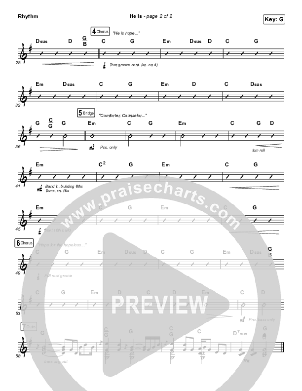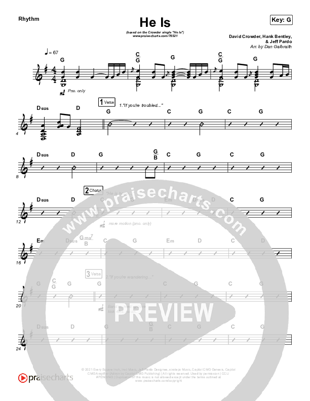 Download the Rhythm Chart for He Is by Crowder, from the album Milk & Honey. This song was arranged by Daniel Galbraith in the key of F, G.