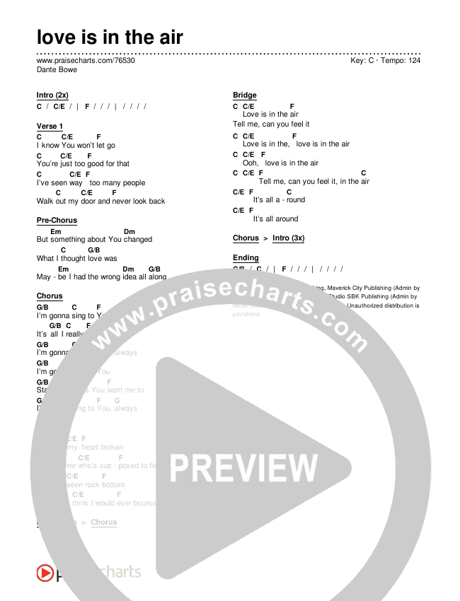 love is in the air Chords PDF (Dante Bowe)