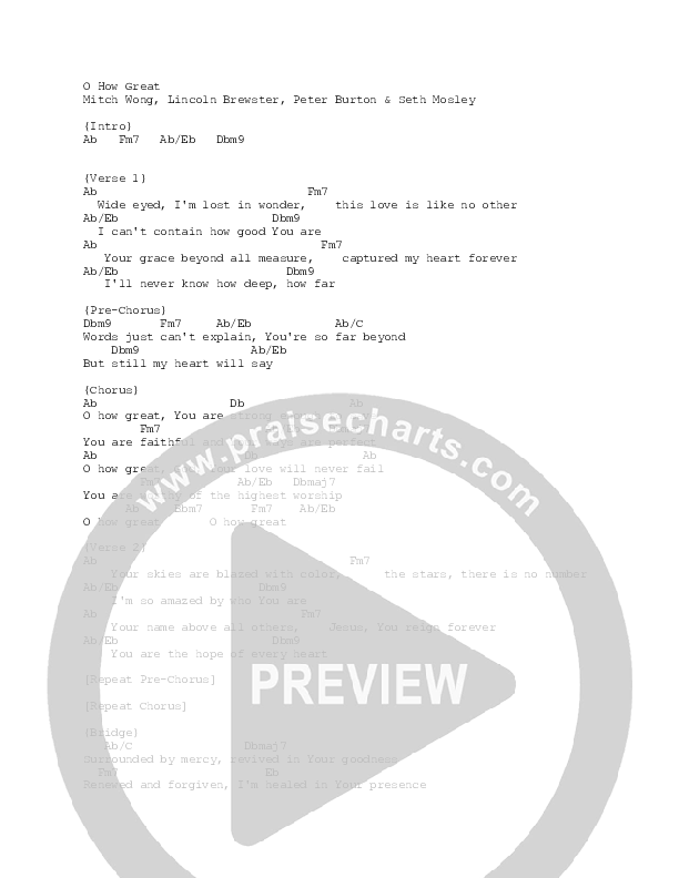 Oh How Great Chords PDF (Lincoln Brewster)