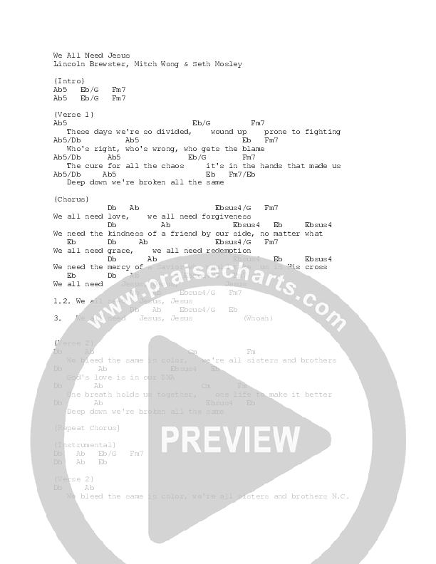 We All Need Jesus Chords PDF (Lincoln Brewster)
