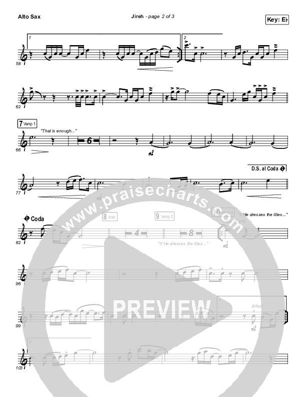 Jireh Alto Sax Sheet Music PDF (Maverick City Music / Elevation Worship / Chandler Moore / Naomi Raine)