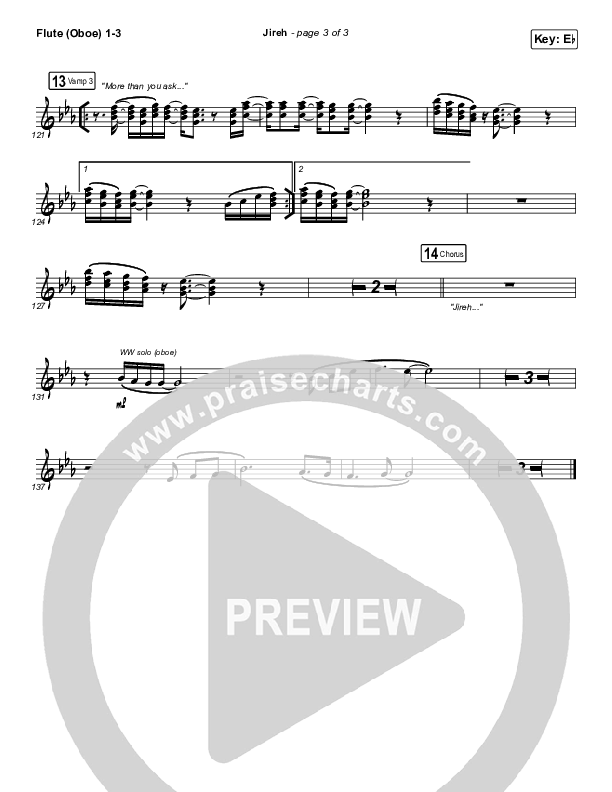 Jireh Flute/Oboe Sheet Music PDF (Maverick City Music / Elevation Worship / Chandler Moore / Naomi Raine)