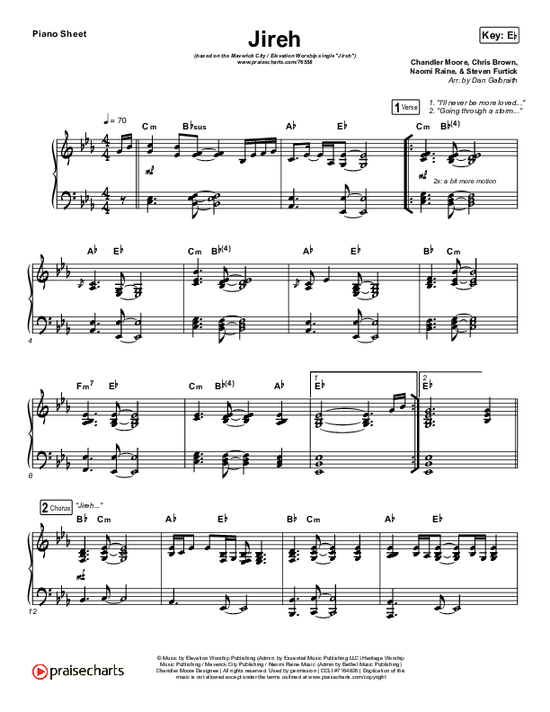 Jireh Sheet Music PDF (Maverick City Music / Elevation Worship / Chandler Moore / Naomi Raine)