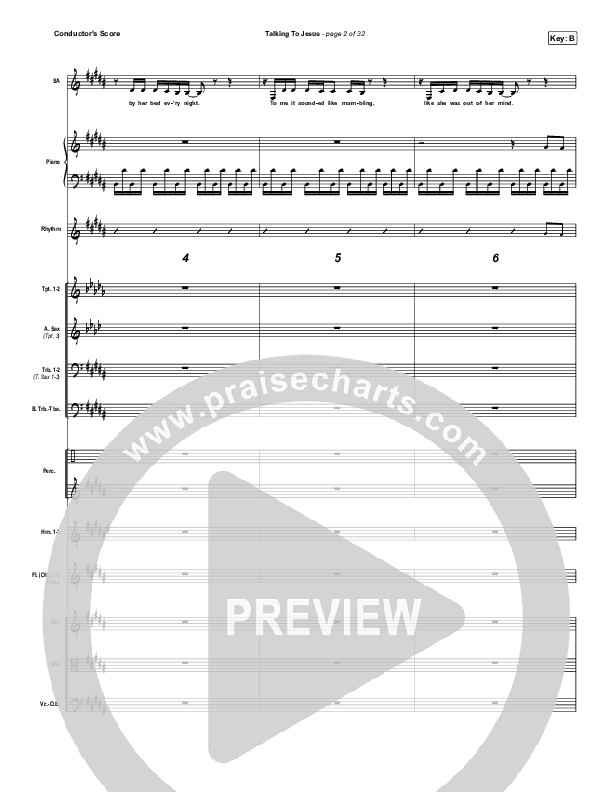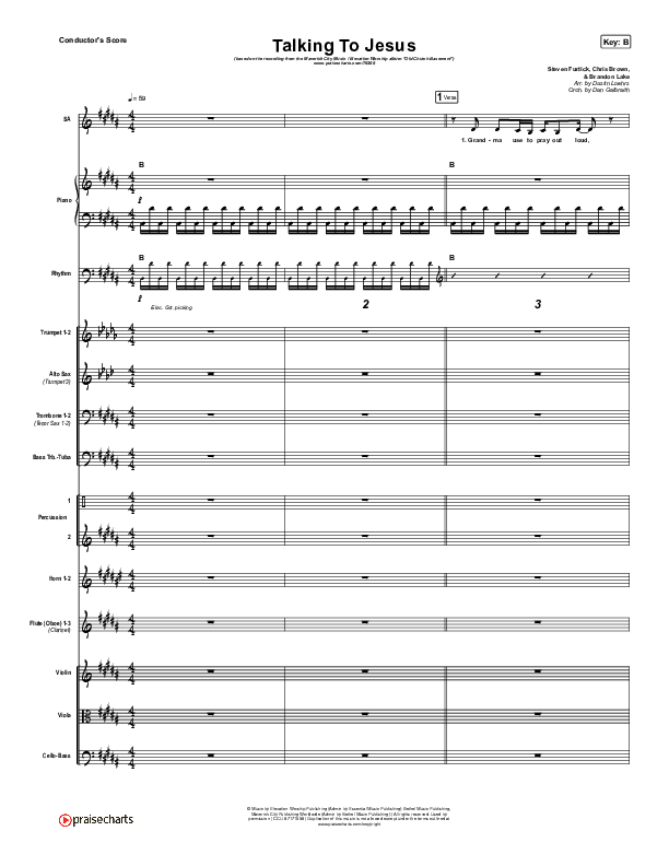 Download the Orchestration for Talking To Jesus by Maverick City Music / Elevation Worship / Brandon Lake, from the album Old Church Basement. This song was arranged by Dustin Loehrs / Daniel Galbraith in the key of B, Bb.