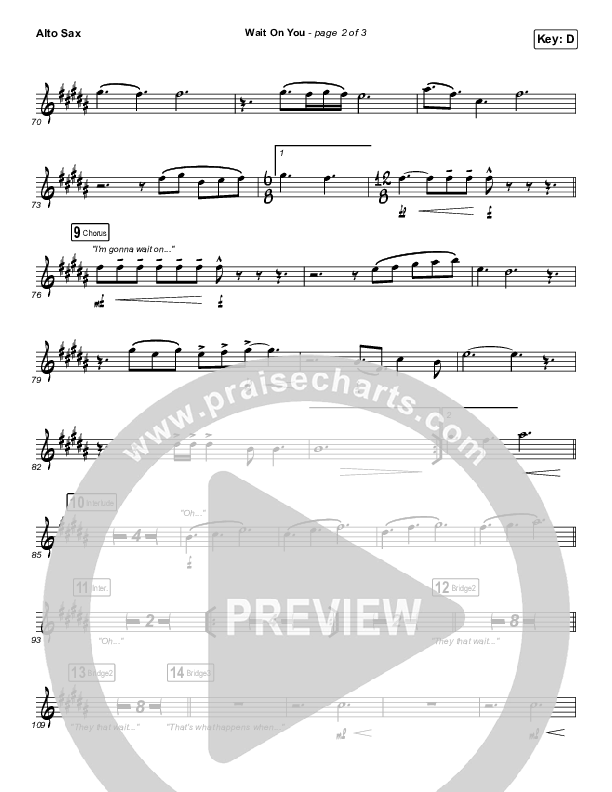 Download the AltoSax sheet music for Wait On You by Maverick City Music / Elevation Worship / Dante Bowe / Chandler Moore, from the album Old Church Basement. This song was arranged by Daniel Galbraith in the key of C, D.