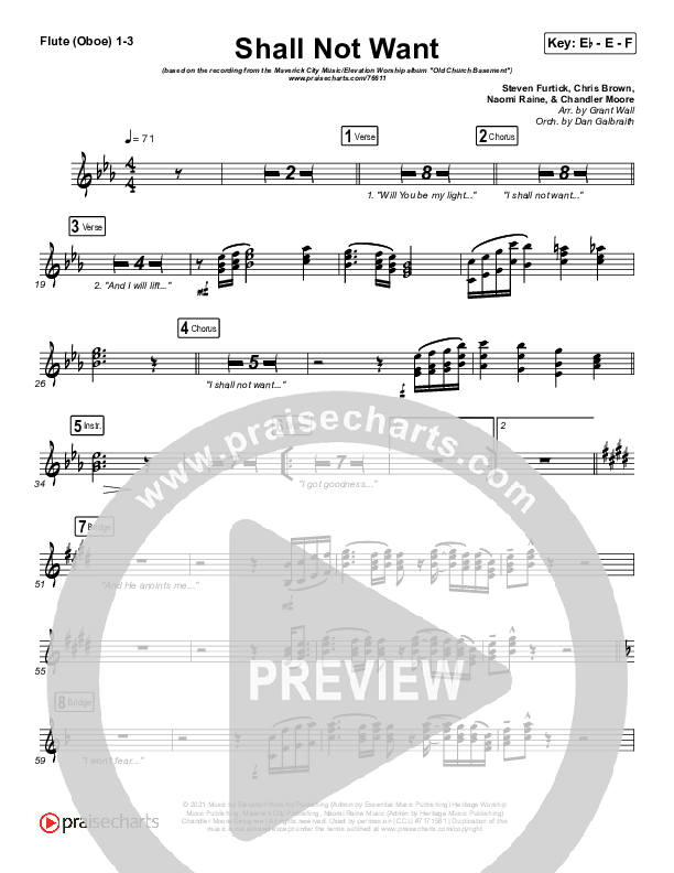Download the Orchestration wind parts for Shall Not Want by Maverick City Music / Elevation Worship / Chandler Moore, from the album Old Church Basement. This song was arranged by Grant Wall / Daniel Galbraith in the key of D, Eb.