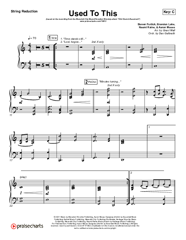 Download the Orchestration for Used To This by Maverick City Music / Elevation Worship / Brandon Lake / Naomi Raine, from the album Old Church Basement. This song was arranged by Daniel Galbraith in the key of C, D.