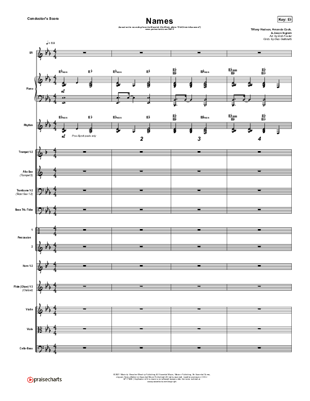 Download the Orchestration for Names by Maverick City Music / Elevation Worship / Tiffany Hudson, from the album Old Church Basement. This song was arranged by Erik Foster / Daniel Galbraith in the key of E, Eb.