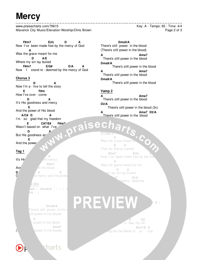 Download the PDF Chord Charts for Mercy by Maverick City Music / Elevation Worship / Chris Brown, from the album Old Church Basement. This song was arranged by Grant Wall / Daniel Galbraith in the key of A, Ab.