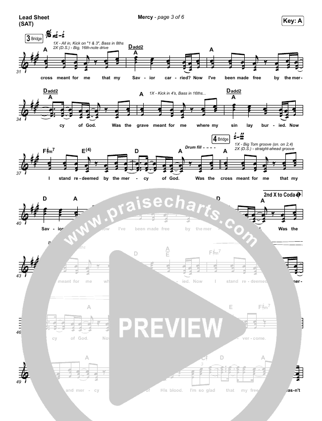 Download the sheet music for Mercy by Maverick City Music / Elevation Worship / Chris Brown, from the album Old Church Basement. This song was arranged by Grant Wall / Daniel Galbraith in the key of A, Ab.