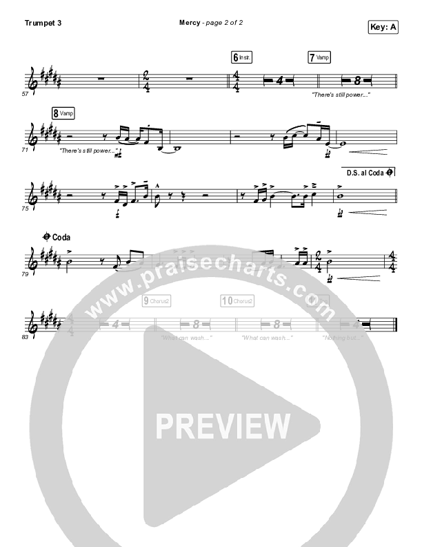 Download the Trumpet 3 sheet music for Mercy by Maverick City Music / Elevation Worship / Chris Brown, from the album Old Church Basement. This song was arranged by Grant Wall / Daniel Galbraith in the key of A, Ab.
