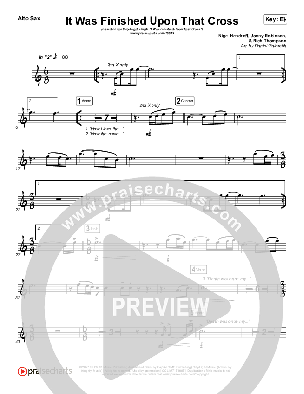 Download the AltoSax sheet music for It Was Finished Upon That Cross by CityAlight, from the album It Was Finished Upon That Cross - Single. This song was arranged by Daniel Galbraith in the key of D, E, Eb, F.