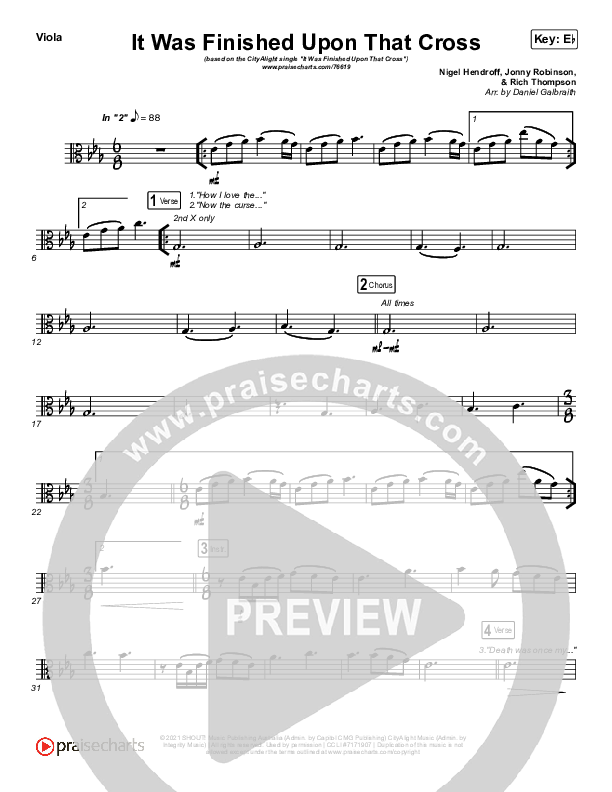 Download the Viola sheet music for It Was Finished Upon That Cross by CityAlight, from the album It Was Finished Upon That Cross - Single. This song was arranged by Daniel Galbraith in the key of D, E, Eb, F.