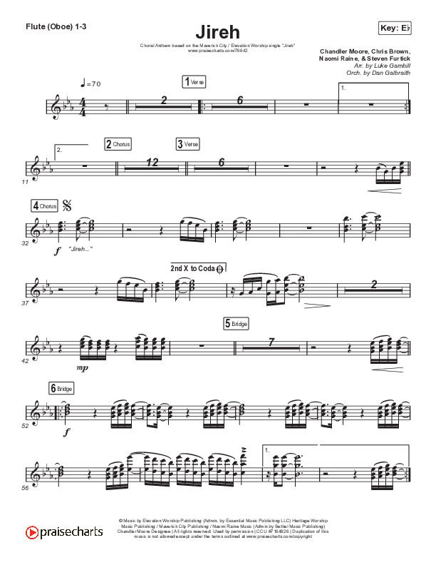 Download the Orchestration wind parts for Jireh (Choral Anthem SATB) by Maverick City Music / Elevation Worship / Arr. Luke Gambill, from the album Old Church Basement. This song was arranged by Luke Gambill / Daniel Galbraith in the key of D, Eb.