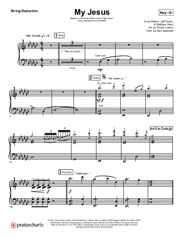 Download the String Reduction sheet music for My Jesus by Anne Wilson, from the album My Jesus - Single. This song was arranged by Daniel Galbraith in the key of G, Gb.