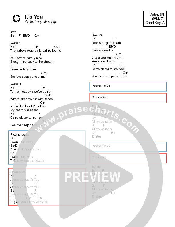 Download the PDF Chord Charts for It's You by Loop Worship, from the album It's You.