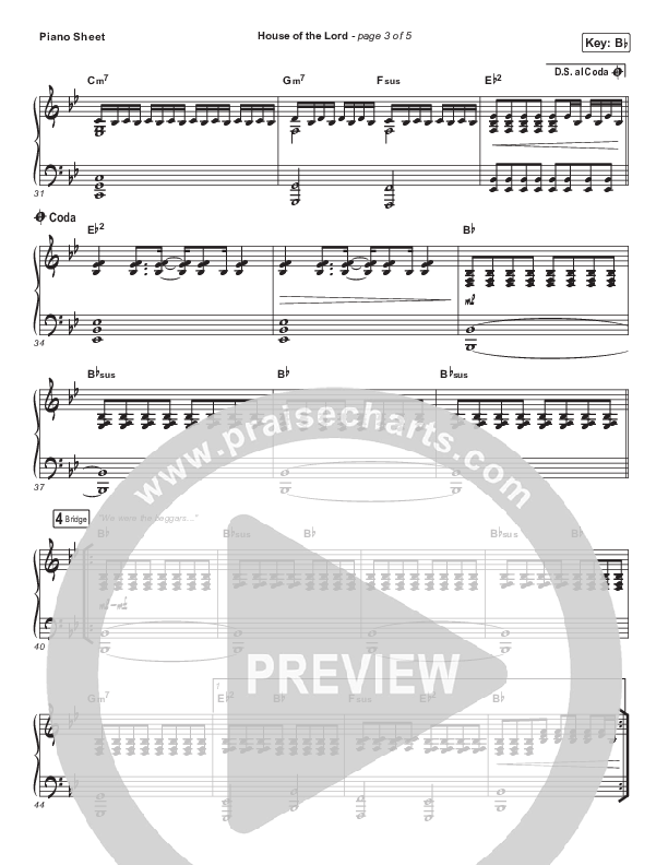 Download the piano sheet for House Of The Lord (YouTube) by Phil Wickham, from the album Hymn Of Heaven (Acoustic Sessions). This song was arranged by Grant Wall in the key of B, Bb.