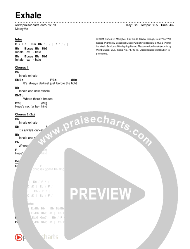 Download the PDF Chord Charts for Exhale by MercyMe, from the album inhale (exhale).