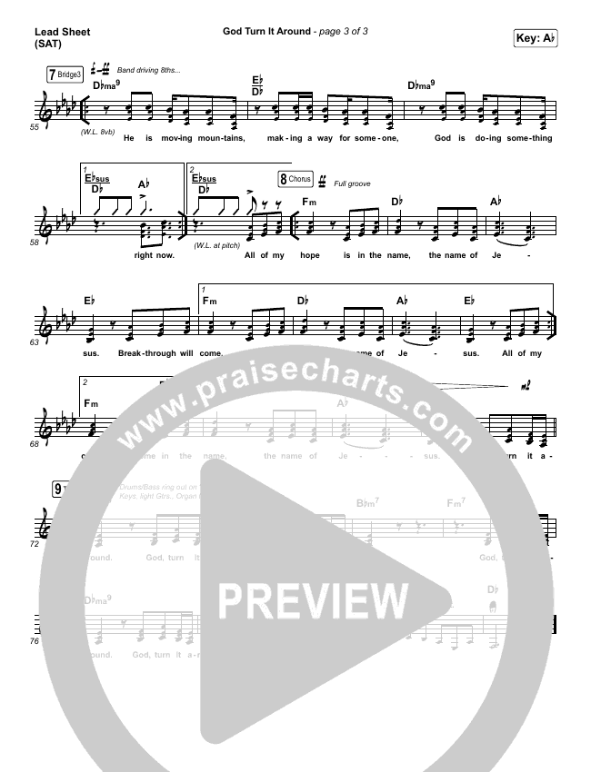 Download the sheet music for God Turn It Around (Live) by Church Of The City / Jon Reddick, from the album Church Of The City (Live). This song was arranged by Grant Wall / Daniel Galbraith in the key of A, Ab, G.