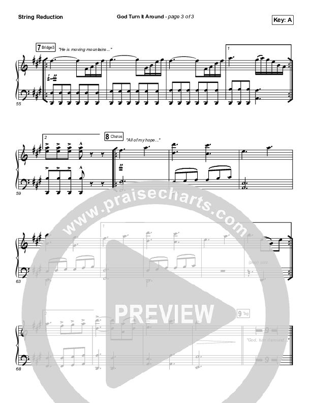 Download the String Reduction sheet music for God Turn It Around (Live) by Church Of The City / Jon Reddick, from the album Church Of The City (Live). This song was arranged by Grant Wall / Daniel Galbraith in the key of A, Ab, G.