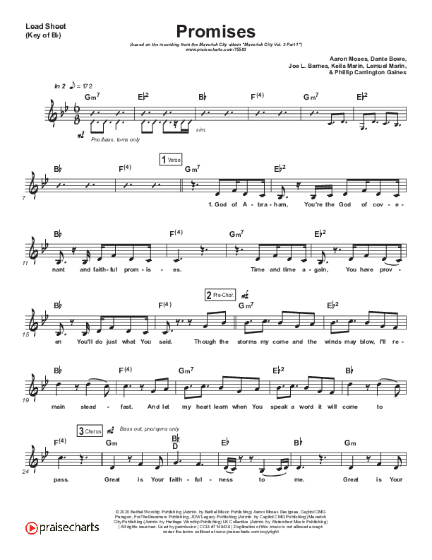 Download the sheet music for Promises (Choral Anthem SATB) by Maverick City Music / Arr. Erik Foster, from the album Maverick City Vol 3 Part 1. This song was arranged by Erik Foster / Daniel Galbraith in the key of Bb.