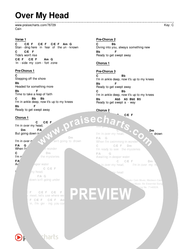 Download the PDF Chord Charts for Over My Head by CAIN, from the album Rise Up.