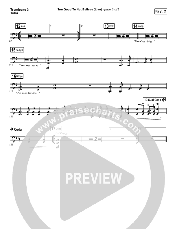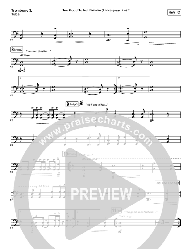Too Good To Not Believe (Live) Trombone/Tuba Sheet Music PDF (Bethel Music / Brandon Lake)
