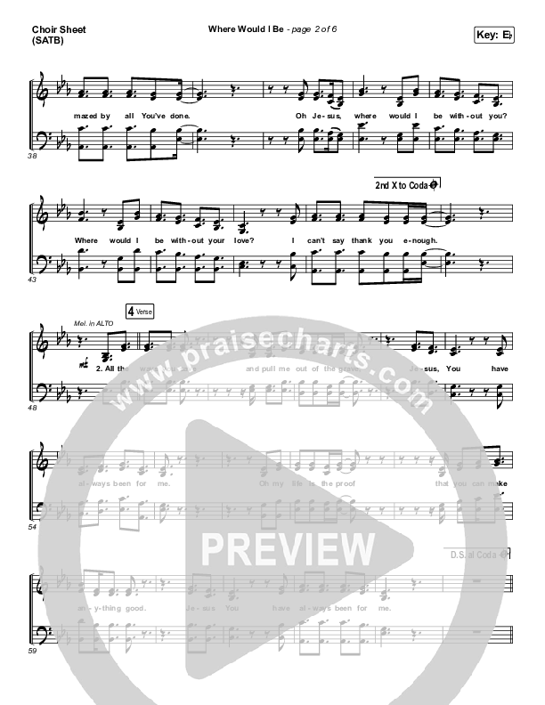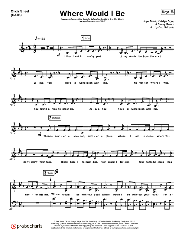 Download the Choir Sheet for Where Would I Be (Live) by The Belonging Co / Hope Darst, from the album See The Light. This song was arranged by Daniel Galbraith in the key of E, Eb.