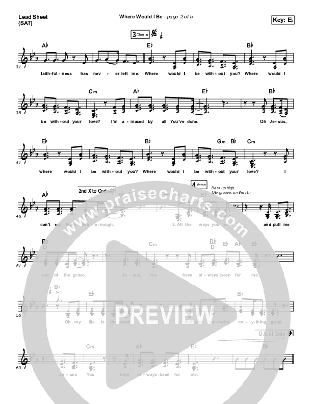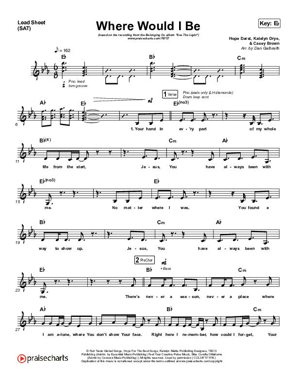 Download the sheet music for Where Would I Be (Live) by The Belonging Co / Hope Darst, from the album See The Light. This song was arranged by Daniel Galbraith in the key of E, Eb.