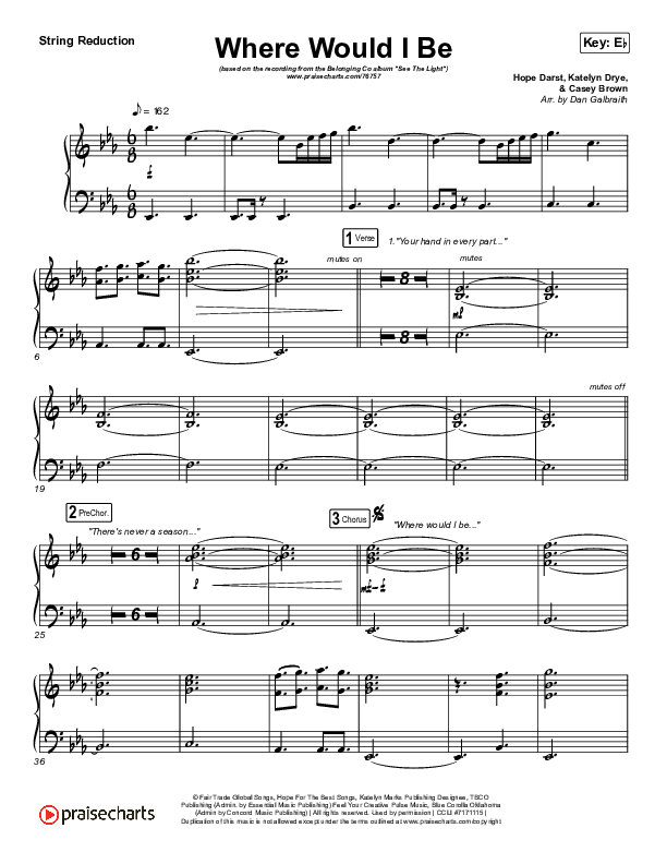 Download the Orchestration for Where Would I Be (Live) by The Belonging Co / Hope Darst, from the album See The Light. This song was arranged by Daniel Galbraith in the key of E, Eb.
