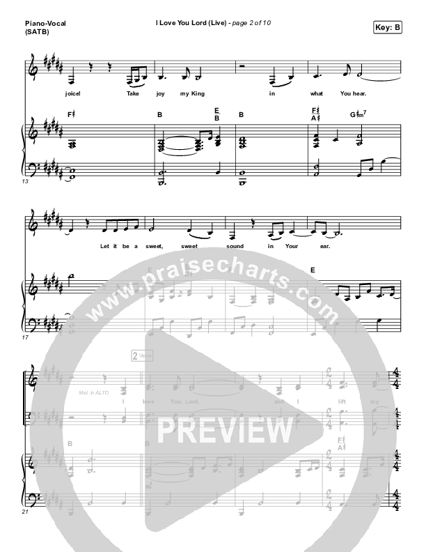 Download the sheet music for I Love You Lord (Live) by The Belonging Co / Ben Cantelon, from the album See The Light. This song was arranged by Daniel Galbraith in the key of B, Bb.