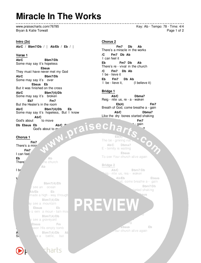 Miracle In The Works Chords PDF (Bryan & Katie Torwalt)